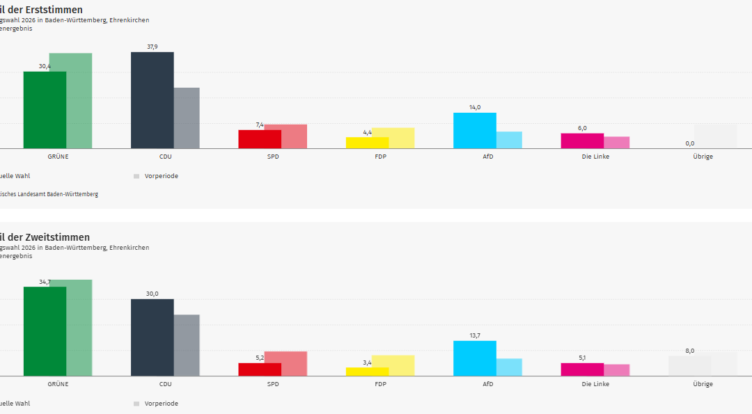 Bei der Landtagswahl 2026 hat die CDU in Ehrenkirchen die meisten Stimmen erhalten.