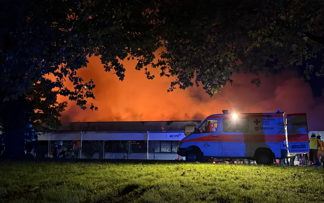 Auch einen Morgen nach dem Ausbruch vom Großbrand im Industriegebiet Freiburg-Hochdorf sind die Löscharbeiten noch nicht abgeschlossen. Nach Polizeiangaben verhinderten über 200 Einsatzkräfte, dass sich das Feuer auf weitere Hallen ausbreitet.