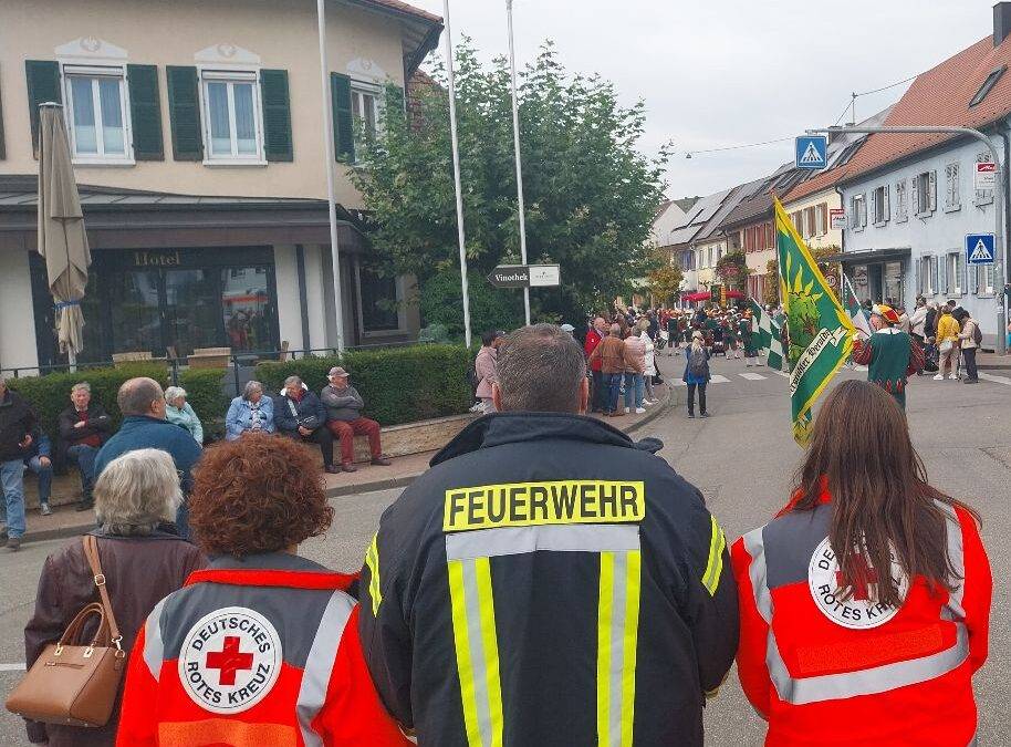 Am Sonntag sicherten Ehrenamtliche des Ortsvereins Ihringen-Wasenweiler den Erntedankumzug in Ihringen mit mehreren tausend Besuchern ab – drei Personen wurden dort medizinisch betreut.