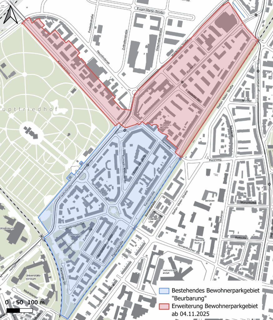 Das bisherige Gebiet „Beurbarung“ wird nach Osten und Süden erweitert und künftig „Brühl-Ost/Beurbarung“ heißen. Neu dazugehören unter anderem die Komturstraße mit Seitenstraßen sowie die Kaiserstuhlstraße. In der Wiehre wächst das Gebiet „Sternwaldquartier“ bis zur Höllentalbahn und zur Richard-Kuenzer- bzw. Sternwaldstraße.