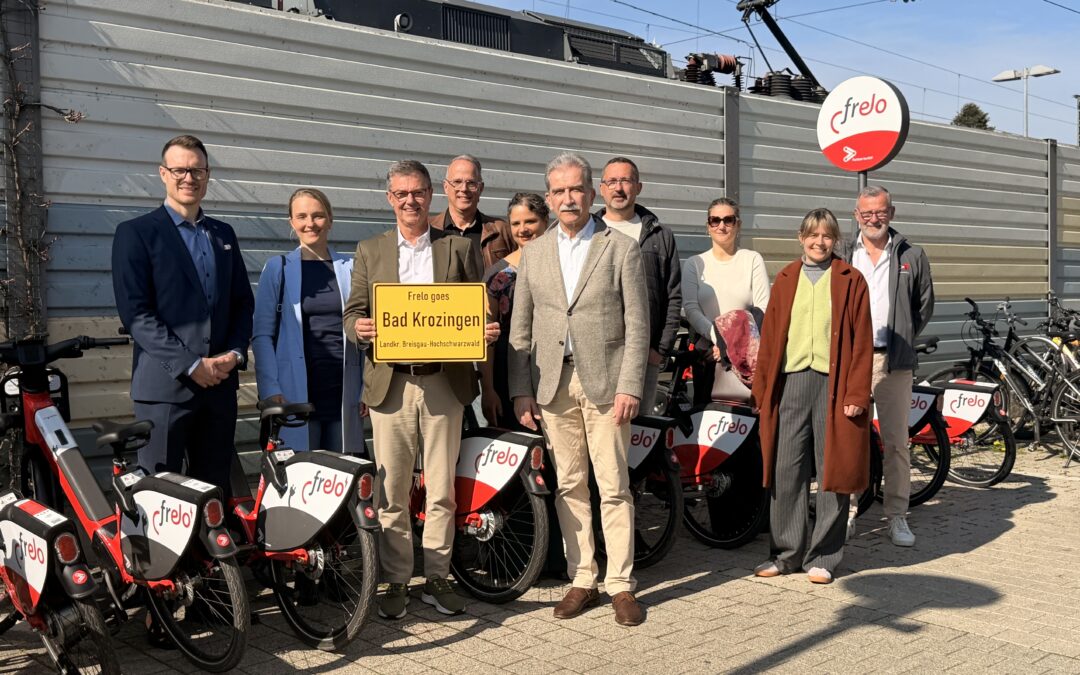 Seit Anfang März 2026 ist das Fahrradvermietsystem Frelo auch in Bad Krozingen verfügbar. Wie die Stadt mitteilt, stehen an zehn Stationen insgesamt 50 Fahrräder bereit, darunter auch E-Bikes. Am Dienstag, 24. März 2026, wurde das Angebot gemeinsam mit einer ADAC-Reparatursäule am Bahnhof offiziell eröffnet.