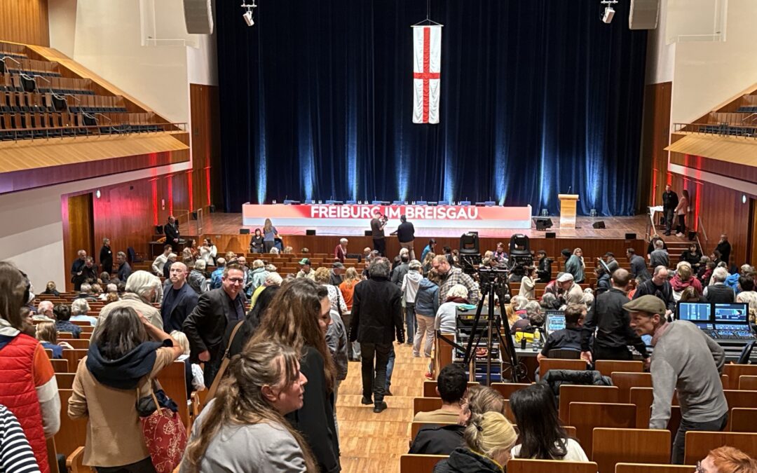 Es ist eines der Highlights im aktuellen OB-Wahlkampf hier in Freiburg. Heute Abend um 19:30 Uhr startet im Konzerthaus die Vorstellung der Kandidaten für die Oberbürgermeisterwahl, die am 26. April stattfindet. Einlass ist um 19:00 Uhr. Die Bürger können zwischen neun Kandidaten wählen. Acht von ihnen werden sich heute vorstellen. Der Bewerber Wim Kölker hat abgesagt, da er nach eigenen Angaben kein Wahlprogramm für die OB-Wahl hat – seine Kandidatur zählt als Satire.