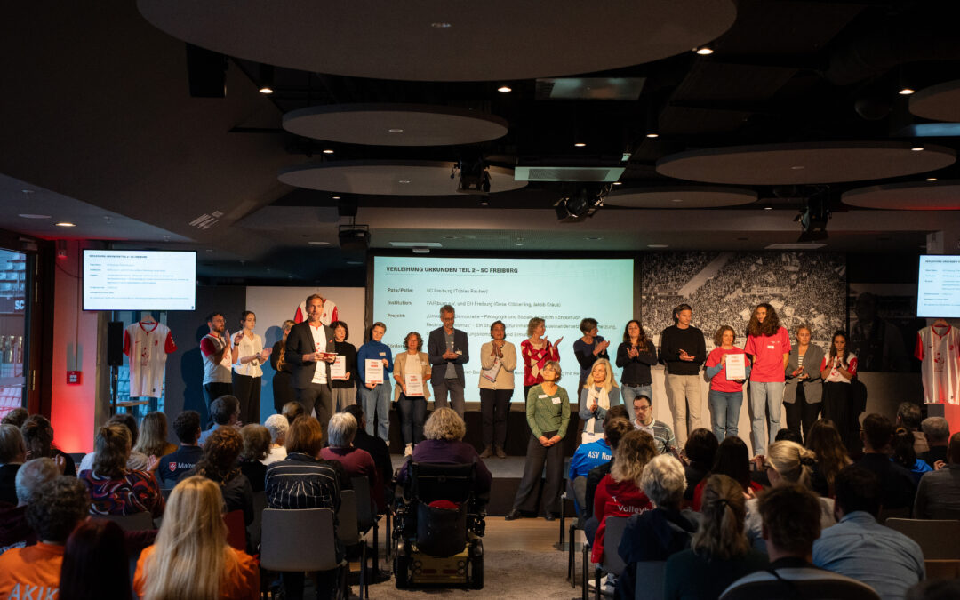 Mit großer Bühne und emotionalen Momenten hat der SC Freiburg erneut den FAIR ways Förderpreis verliehen. Insgesamt 100.000 Euro gingen an 41 soziale Projekte aus Freiburg und der Region. Vergeben wurden Fördersummen zwischen 1.000 und 7.000 Euro. Laut SC wurden seit 2012 bereits 895.000 Euro ausgeschüttet. Die Preisverleihung fand im VIP-Bereich des Europa-Park Stadions statt.