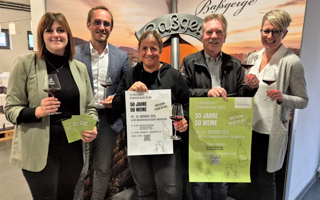 Ein Jubiläum der besonderen Art feiert die Stadt Vogtsburg im Kaiserstuhl: Zum 50. Stadtgeburtstag laden Winzergenossenschaften und Weingüter am Freitag, 24. Oktober, zur Veranstaltung „50 Jahre 50 Weine“ in die Winzergenossenschaft Oberbergen ein. Nach Angaben der Stadt beteiligen sich nahezu alle Weinbaubetriebe an diesem Gemeinschaftsprojekt – ein Novum in der 50-jährigen Stadtgeschichte.
