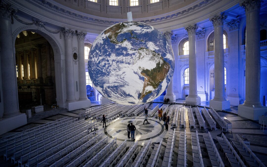 Eine rotierende Weltkugel von zehn Metern Durchmesser schwebt seit Freitag unter der Kuppel des Doms St. Blasien: Die Kunstinstallation Gaia des britischen Künstlers Luke Jerram eröffnet Besucherinnen und Besuchern bis 9. November einen eindrucksvollen Blick auf die Erde. Zusammengesetzt aus NASA-Aufnahmen zeigt der illuminierte Globus unseren Planeten maßstabsgetreu und dreidimensional. Nach Angaben der Hochschwarzwald Tourismus GmbH handelt es sich um die bislang größte in Deutschland präsentierte „Gaia“.
